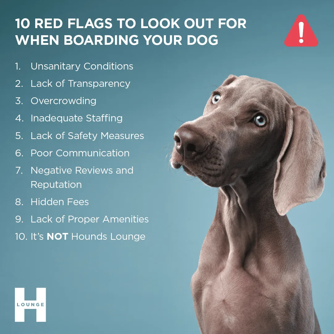 To help you find a home away from home for Fido, the Hounds Lounge pack has listed ten red flags to look out for when searching for a place to board your dog.