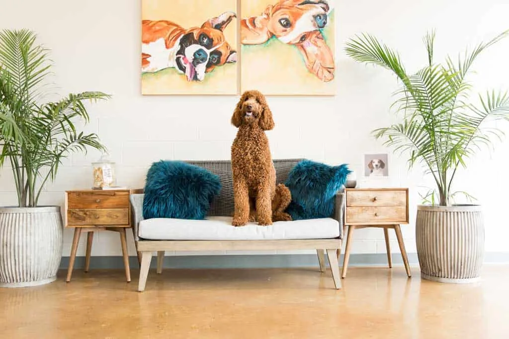 Additionally, some dogs simply don’t like to go outside. Whether it’s too cold, too hot, too rainy or even too sunny for their taste, they will try to stay indoors as much as they can. At Hounds Lounge doggy daycare, we see dogs every day who exclusively hang out in our indoor play yard. As you will learn in this blog, it’s okay for a pooch to spend a lot of time indoors, as long as you know how to keep your dog busy.