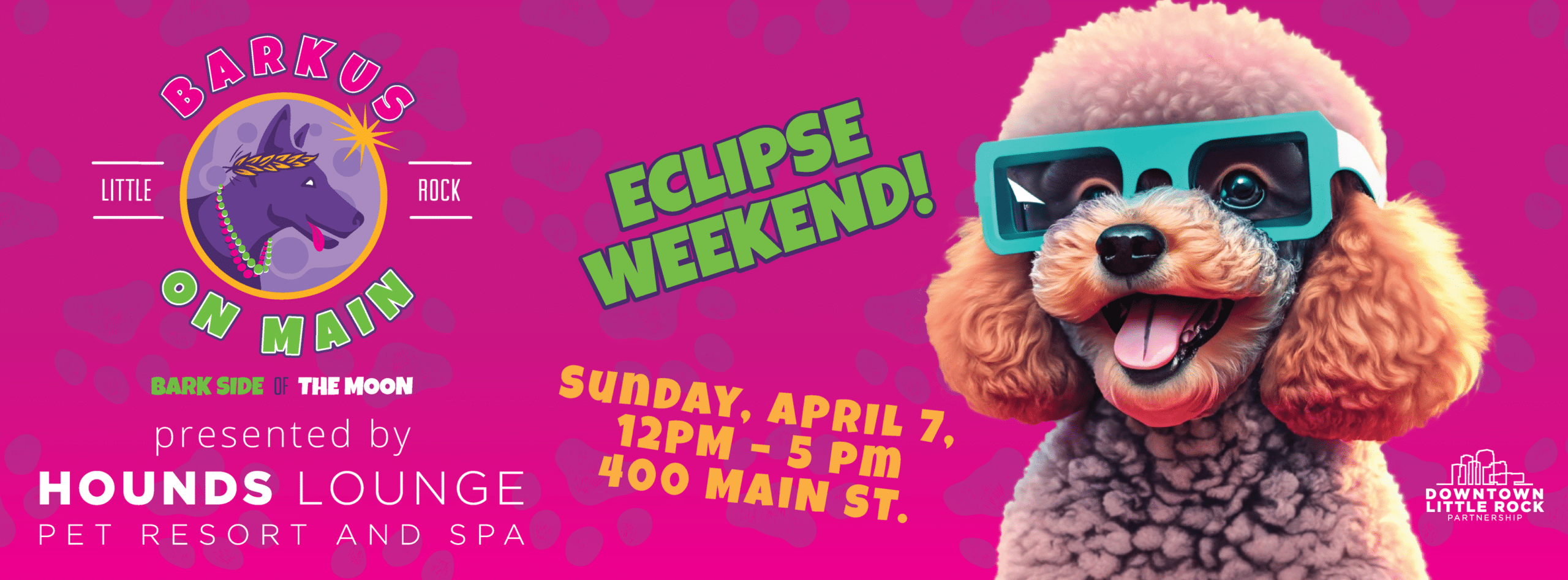 If you’ve been searching for upcoming dog events in Central Arkansas, you’re in luck! One of our favorite events, Barkus on Main, is happening on Sunday, April 7th from noon to 5:00 p.m. in downtown Little Rock. Barkus on Main is Little Rock’s largest Mardis Gras dog event of the year, complete with a dog parade, a beer garden, a hurricane station, gumbo, a crawfish boil, local vendors and plenty of beads. Because this year’s event is the day before the eclipse, the theme is Bark Side of the Moon!