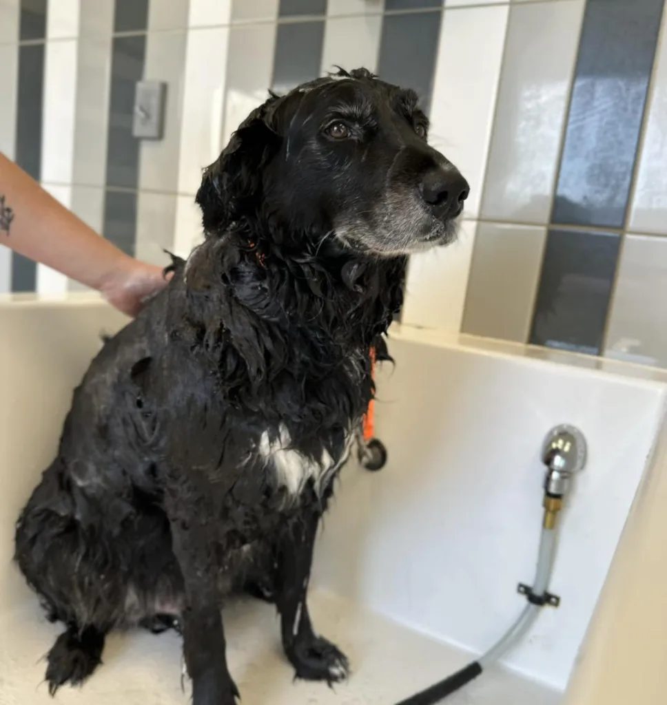 At Hounds Lounge, this often means shorter sessions, more breaks, and a gentler, more patient approach tailored to each senior pet. You might say this method takes the “grrr” out of grooming.