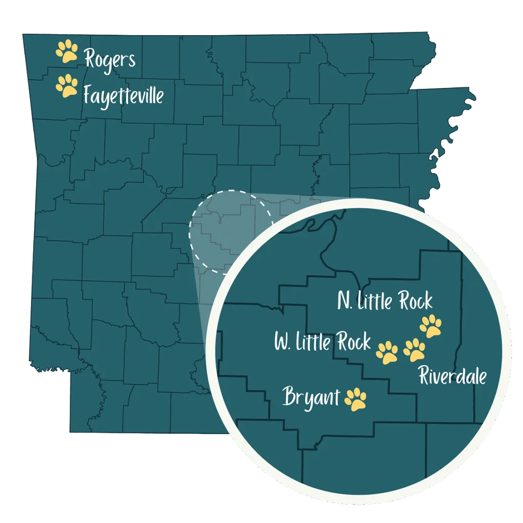 Visit our partner in pet wellness, welcoming dogs, cats and exotics. Located next door to Hounds Lounge in North Little Rock.
